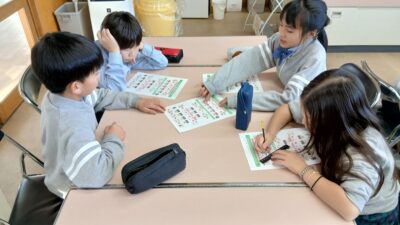 授業では、カカオ豆が何年かけて育つのか、そしてどれくらいの時間をかけて海を渡り日本にやってくるのか、さらに私たちの手元に届くまでにどのような加工がされているのか、その壮大な旅の工程を詳しく教えていただきました。クイズなどを交えた楽しい授業形式で、児童たちは終始興味津々でした。授業の最後には、実際にチョコレートを味わい、カカオの風味や奥深さを五感で体験しました。カカオの成長からチョコレートになるまでの物語を知ることで、改めて食べ物への感謝の気持ちを持つことができました。明治の皆様、貴重な学びの機会をありがとうございました。