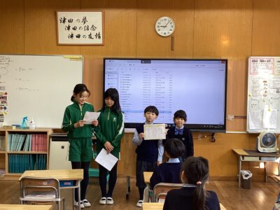 先日保健委員会が、「毎日ハンカチ・ティッシュを持ってこよう、爪の長さを守ろう」と衛生検査を主催し、本日表彰式を行いました。衛生検査の期間中に「ハンカチ・ティッシュ」を毎日持ってくることができたクラス、かつ、「爪の長さ」を守り続けることができたクラスは残念ながらありませんでしたが、「爪の長さ」を守り続けることができたクラスに、特別賞を渡しました。表彰されたクラスの皆さん、おめでとうございます!衛生検査が終わっても、また残念ながら表彰されなかったクラスも、「爪の長さ」に気をつけたり、毎日「ハンカチ・ティッシュ」を持ってくるようにしましょう。