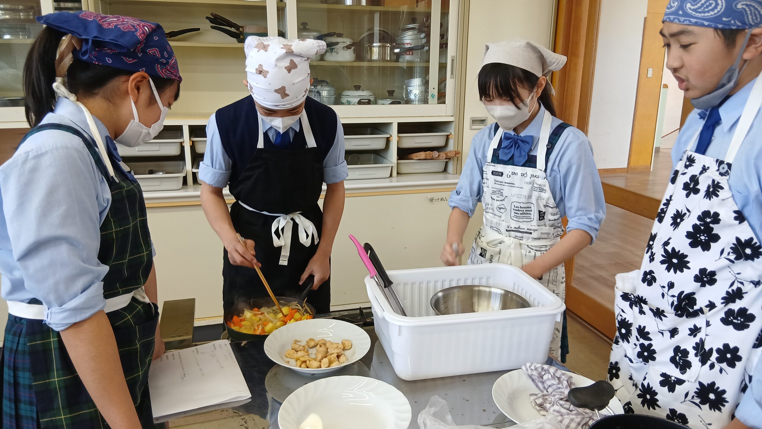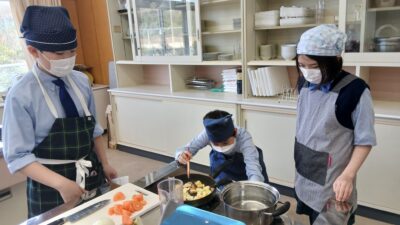 6年2組が家庭科の授業で調理実習を行いました。今回の調理実習は小学校の締めくくりとして、「カレーコンテスト」を開催しました。それぞれの班でオリジナルのカレーを作って、先生方に食べていただき、点数をつけてもらいます。点数が最も高かった班が優勝です。
