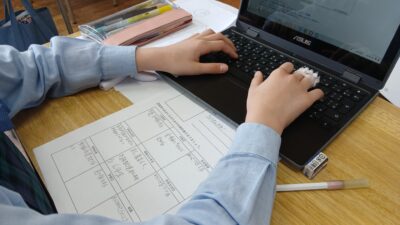 まずは、前回の授業で自由に書き出した「やりたいこと」を、くらげチャートを使って分類しました。バラバラだったアイデアをチャートの「足」の部分に整理することで、自分が今、何に一番エネルギーを注ぎたいのかを客観的に見つめ直しました。考えをまとめた後は、今年一年の自分を象徴する「漢字一文字」を決定しました。考えをまとめた後は、今年一年の自分を象徴する「漢字一文字」を決定しました。最後は、夢を夢で終わらせないためのアクションプラン(具体的な行動計画)の作成です。「毎日30分読書をする」「授業中に一度は挙手をする」など、今日からすぐに始められる具体的な行動に落とし込みました。