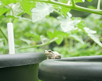 今回はビオトープや水路でたくさん見つけることができる生き物、「カエル」を紹介します。