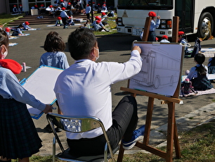 10月16日(金)に1・2年生の写生大会を実施しました。今年は自分たちが通学や学校外に出かける時に使用しているスクールバスを描きました。