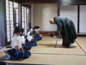 また、警策でたたいていただくことにも挑戦した児童がたくさんいました。座禅を組んだ後は和尚より、呼吸とは「はいて、すうこと」であると教えていただきました。心を落ち着けたいときには深呼吸と言いますが、大きく吸って吐くのではなく、しっかり息を吐きだしてから自然と息を吸い込むのが良いそうです。日々の生活の中で落ち着いたり、集中したりするときにはこの呼吸法を活用したいですね。