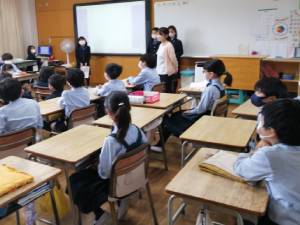 4月15日(金)に対面式を行いました。この式は、先週入学してくれた1年生が上級生の児童と顔を合わせるとともに、上級生から学校でのルールを教えてもらうというものです。 1年生は6年生のお兄さんお姉さんに連れてもらいながら、2年生から5年生までの教室を周り、各教室で学校でのルールを教えてもらいました。給食や持久走、山でのあそび方や遊び道具のあつかい方など、学校生活を過ごすうえで必要なことを楽しく教えてもらい1年生の児童はとても楽しそうに過ごしていました。最後には1年生からの質問に6年生が答えていきました。1年生のみなさん、また分からないことがあれば上級生のお兄さんお姉さんに何でも聞いてください。上級生のみなさん、1年生の児童にとって頼りになる存在になれるようこれからも頑張りましょう。