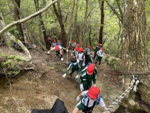そして、子どもたちはその険しい道のりを、息を切らしながらも歩みを進めました。そのため、山頂に到着したときは、登り切ったことによる達成感を味わっており、とても満足気な様子でした。また下山をして昼食を取った後には、近くの小川で水遊びや談笑をして、優雅なひと時を過ごしていました。今回の遠足では、仲間と励まし合いながら登山をしたことで、仲間との絆がより一層深まったように感じました。