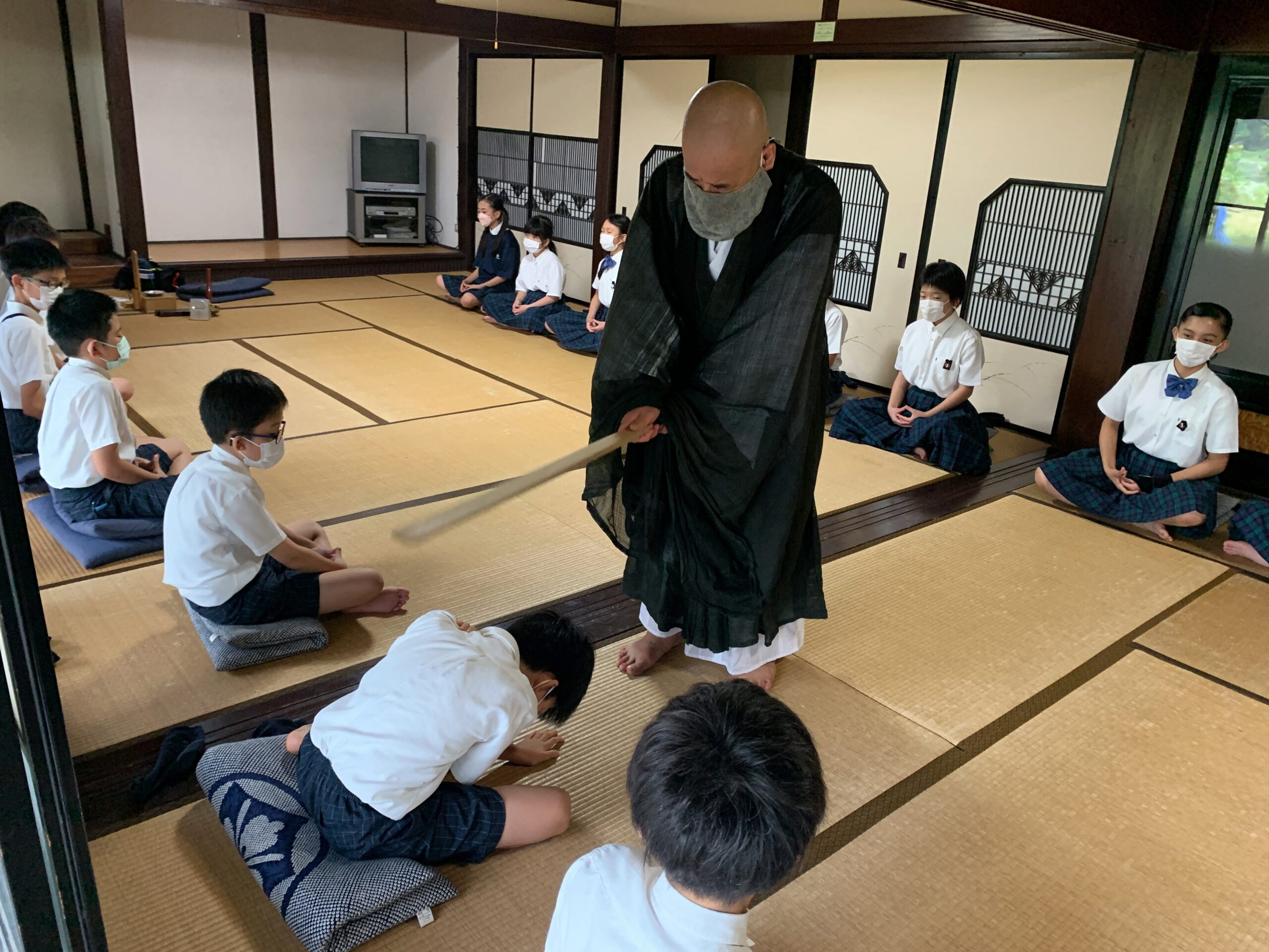 2年生と6年生が坐禅指導を行いました。鳴谷山聖宝寺の和尚様に来ていただき、呼吸の仕方や姿勢についてお話をいただきました。 6年生にとっては最後の坐禅指導だったため、児童からは「もう最後なのか…。」と名残惜しい声もありました。 心を整える良い時間を過ごすことができました。