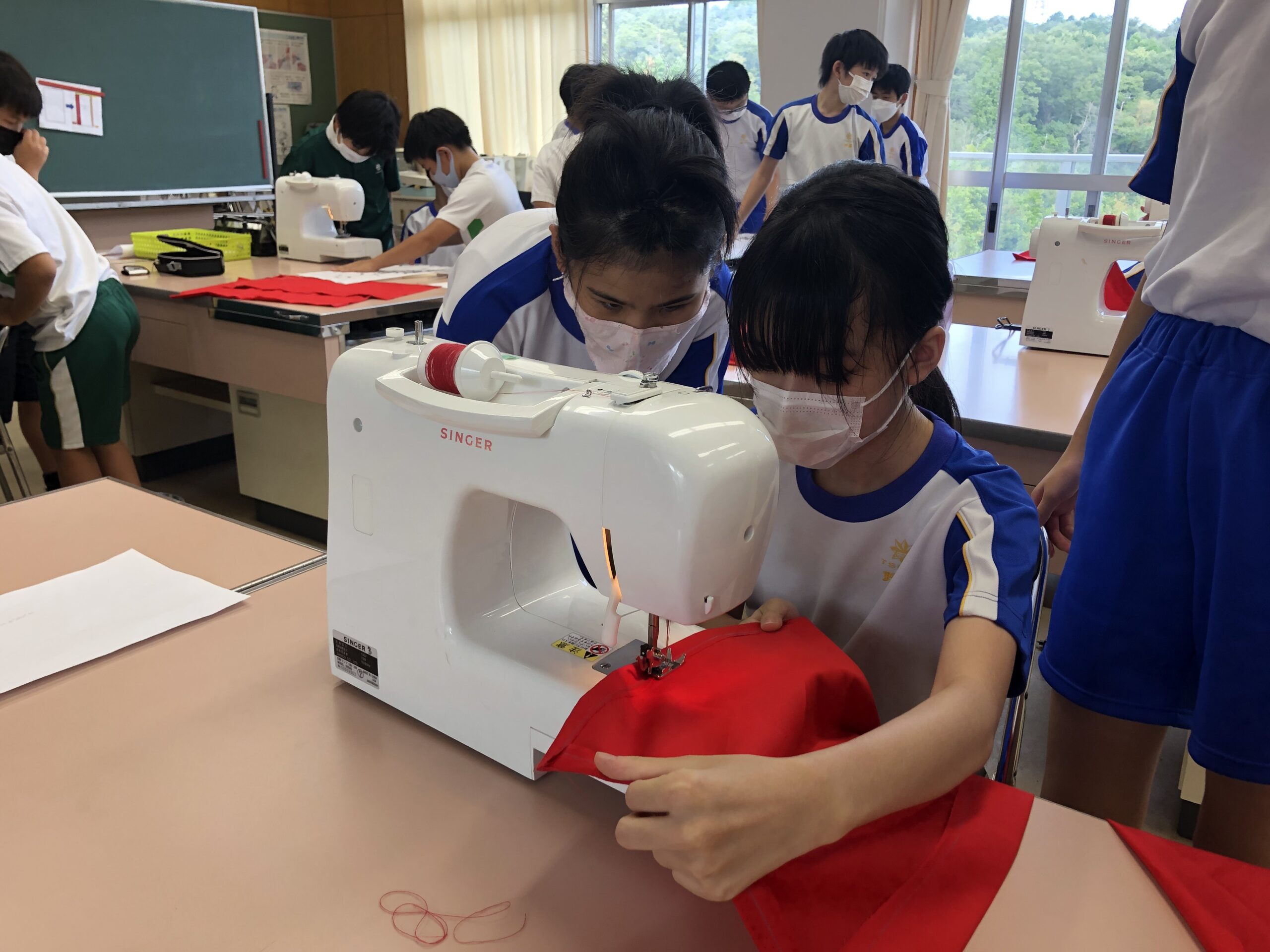 5年生はデザインを、6年生はミシンで縫い物をしました。