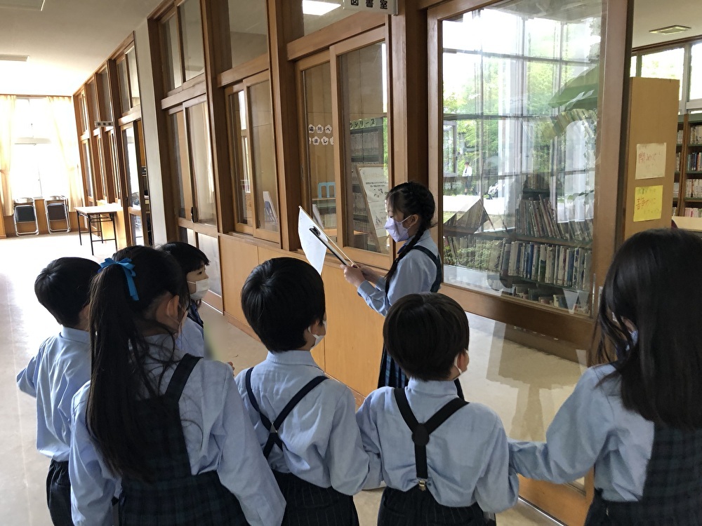 4月24日(月)生活科の授業で2年生が1年生に学校を案内をしました。2年生は、この日のために1年生の名札を作ったり、誘導の旗を作ったりしました。いざ始まると元気よく学校を歩き、1年生に一生懸命説明する姿が見られました。また、1年生がはぐれそうになったり、走ったりしたときに、手を引いて優しく学校のルールを教えてあげていました。2年生は津田学園小学校のお兄さん、お姉さんとして成長した姿を見せてくれました。。1年生の皆さんは、教えてもらったことを覚えていてほしいと思います。