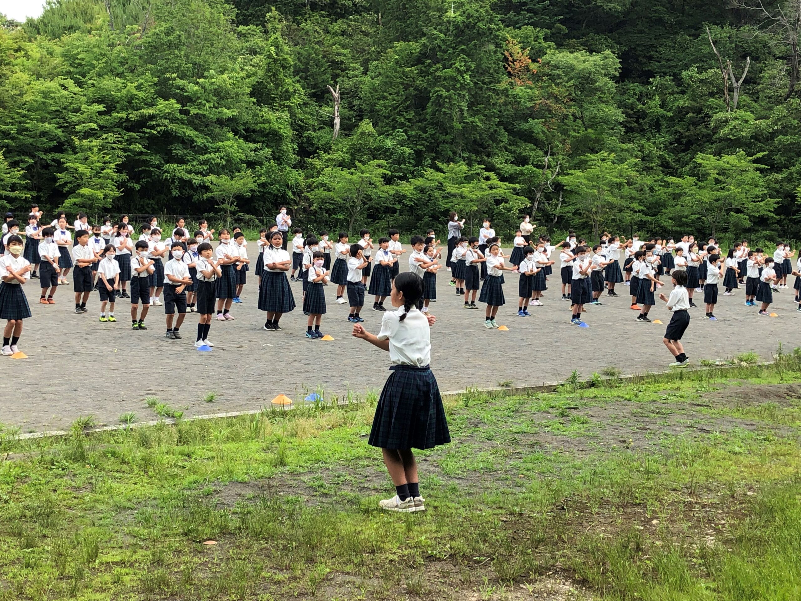 6月1日(木)から朝の「運動の時間」は持久走ではなくラジオ体操を行っています。5,6年生の体育委員が見本となり、全校児童がしっかりと体の曲げ伸ばしや跳躍などの運動をします。ラジオ体操を行うことで、朝から体のリズムを整え、その後の授業をしっかり受けることができます。