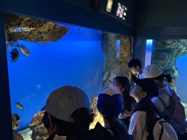 汐の学校3日目を行いました。午前のプログラムは鳥羽水族館の見学でした。水族館の生きもの探求図鑑という探求学用ワークブックを使って、水族館にいる生きものの動きや姿かたちを観察しました。午後のプログラムは伊勢夫婦岩めおと横丁でお土産を買って帰りました。帰りのバスでは、汐の学校で楽しかった思い出話が尽きないようでした。3日間の活動は、海の恵みを感じる貴重な時間でした。