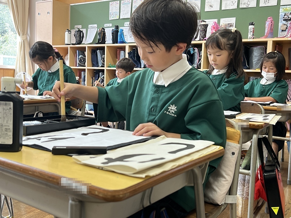 9月7日(木)二年生が書道指導を受け「けしき」と書きました。夏休み明け最初の書道指導で、緊張した様子も見られましたが、集中してしっかりと書けていました。また、自分が納得するまで、文字の形や、筆の運びにこだわり取り組むことが出来ていました。