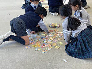 1月15日(月)2年生がカルタ大会を実施しました。かるたは「犬棒かるた(ことわざ)」を使用しました。子供たちは国語の授業でかるたの練習をしてきました。「はい!」と元気よくかるたをとり、白熱した様子でした。優勝した児童は18枚もの札を取ることができました。3年生になってからは、百人一首大会になります。今から少しでも覚えていけるといいですね。