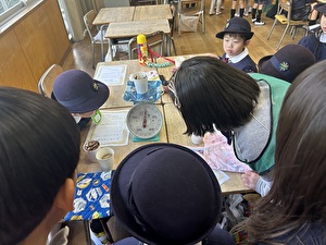 1月15日(月)津田第一幼稚園との交流会がありました。年中の3クラスと、3年生の2クラスの交流会です。算数の重さの授業として、学校の里山にあるものでピッタリ100gを作ろうというゲームをしました。年中児のみなさんは、3年生の子に山を案内されながら、山にあるどんぐりや木の枝、葉っぱ、石などを拾って100gをつくっていました。教室で重さをはかり、見事100gになった子には「ぴったり賞」を渡しました。この授業を機に小学校と幼稚園の関係がより深まったように感じました。