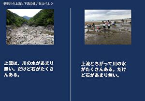 4年生が理科の授業で「流れる水のはたらき」の学習をしています。津田学園小学校では、1年生で海の学校、3年生で山の学校へ行きます。海の学校は朝明川の下流域、山の学校は朝明川の上流域で行います。「流れる水のはたらき」の学習では、写真を見ながら、1年生と3年生の時に実際に見た川の様子を思い出しました。上流と下流の違いを写真を見ながらロイロノートでまとめました。子供たちは1年生の時の海の学校のことを思い出しながら、嬉しそうに学習を進めていきました。津田学園小学校では、今回の「流れる水のはたらき」のように水をテーマとした学習を系統的に学習をしていきます。