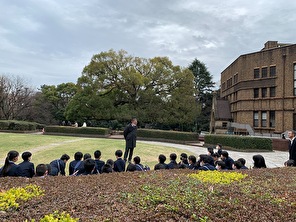 歴史の学校3日目 3日目は東京の自由散策を行いました。4班に分かれ、それぞれ地下鉄などの公共交通機関を使って目的地へ向かいました。自分たちで事前に考えたルート通りに進めるよう、協力して動くことができました。その後、東京大学に集合し、学生食堂を利用させていただきました。安田講堂などを見て東京大学の雰囲気を感じることができました。最後は国立科学博物館で、地球や人類の歴史を学びました。明日はいよいよ最終日です。最後までマナーを守りながら歴史を学んでいきます。