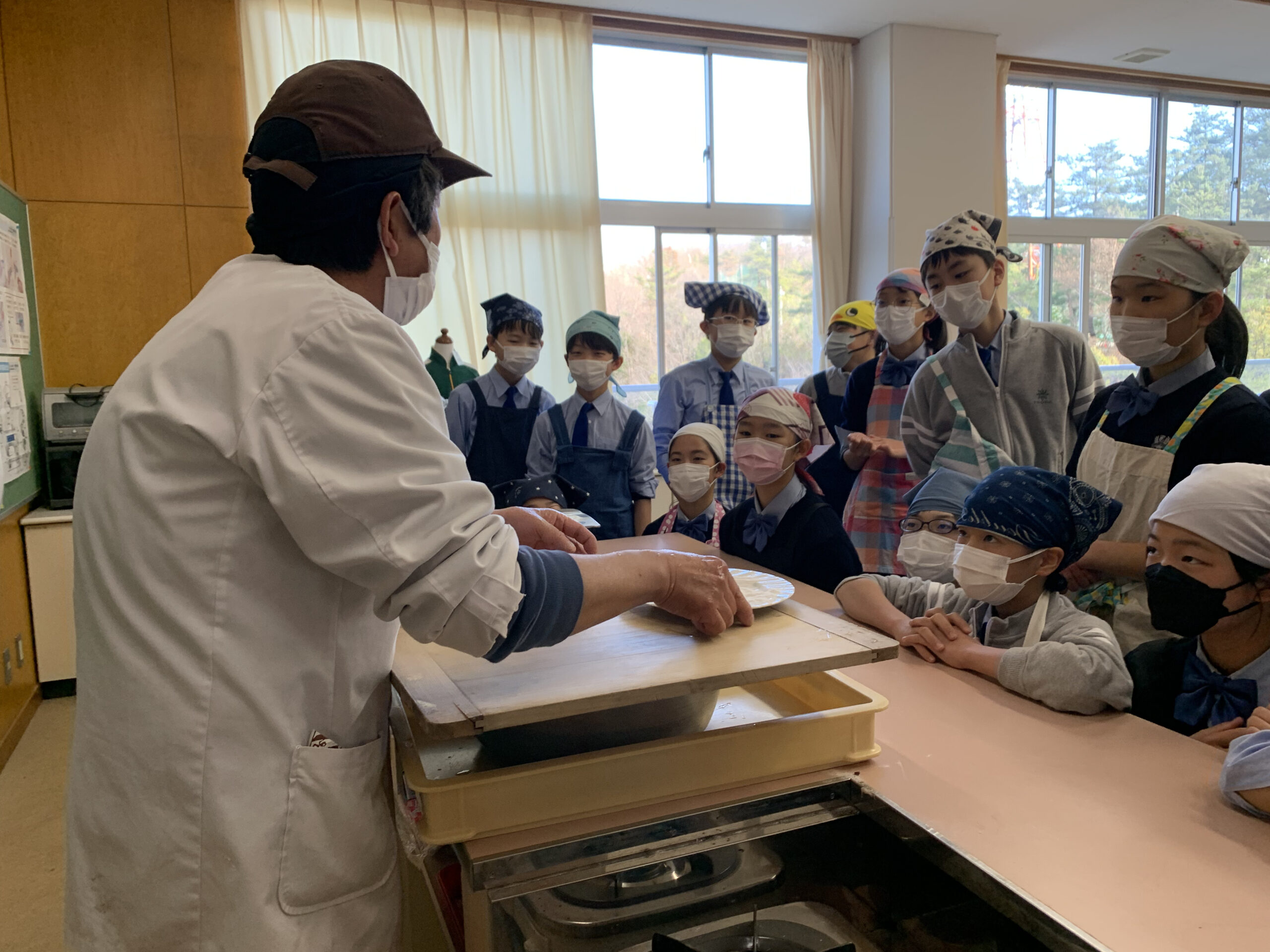 6年生が家庭科の出前授業で桑名の伝統的な銘菓である安永餅作りに挑戦しました。講師の先生に作り方を教えてもらい、柔らかいお餅の形を整えるのに四苦八苦しながらも、なんとか完成!出来立てのお餅を食べると「美味しい!」という声があちこちで聞こえました。