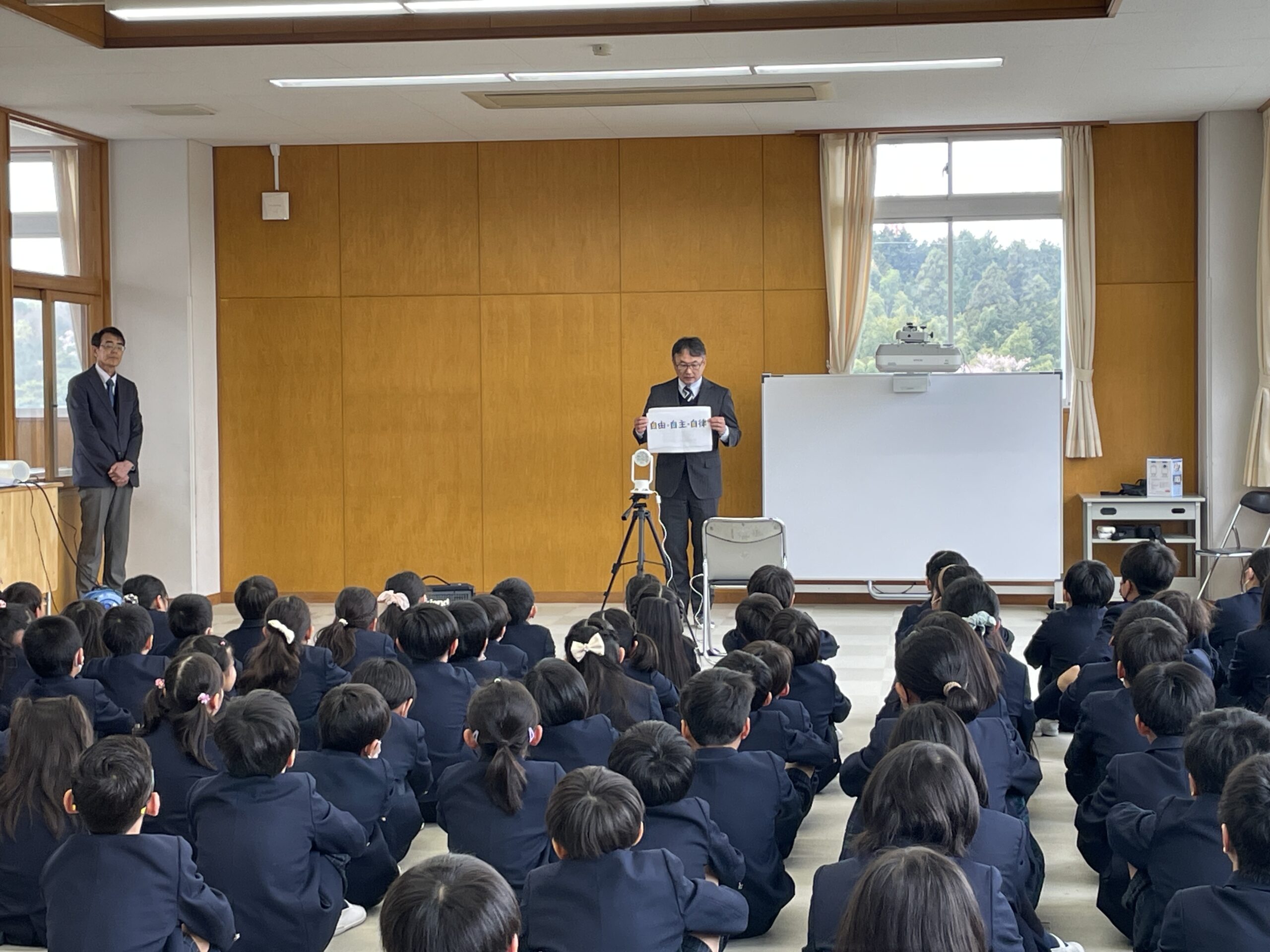 4月8日(月)令和6度始業式を行いました。児童玄関に掲示した新しいクラスを確認した子どもたちからは、新たな学校生活に心を踊らせる様子がうかがえました。 始業式では、校長先生から、学園訓でもある「自由・自主・自律」についてお話がありました。その中でも今回は「自主」について話をしていただきました。子どもたちがこれから新たなことに出会い、挑戦し成長していけるように教職員一同指導にあたります。今年度もよろしくお願いします。