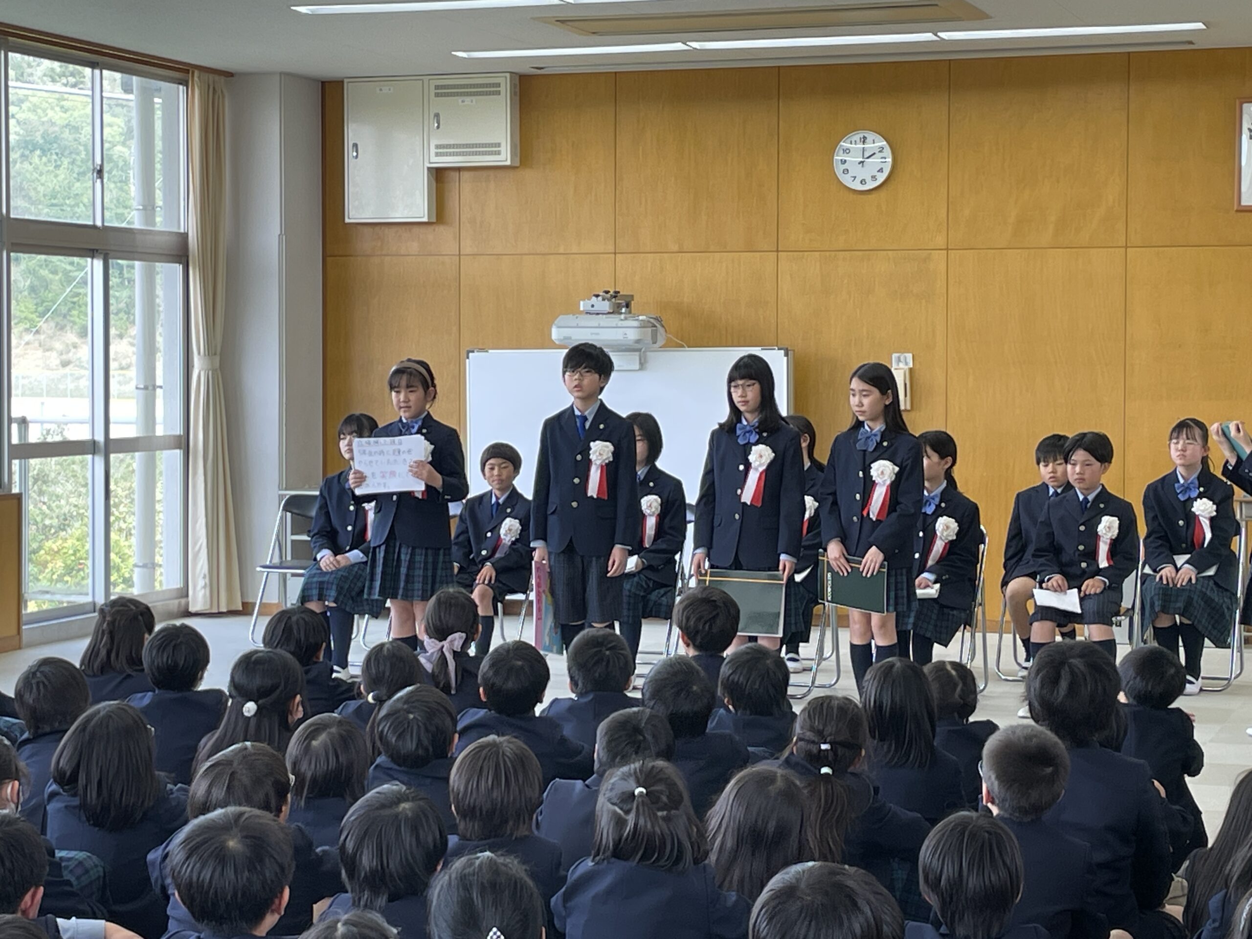 前期児童の会役員立会演説会及び選挙を行いました。立会演説会では、5,6年生の立候補者が4年生以上の児童に向けて演説を行いました。今年も多くの児童が立候補し一人一人が学校を今以上によくしていきたいという気持ちを話してくれました。その姿に高学年として頼もしさを感じました。また、演説を聞く児童の様子も学校の代表を決めるための選挙ということで真剣に聞く姿が見られました。