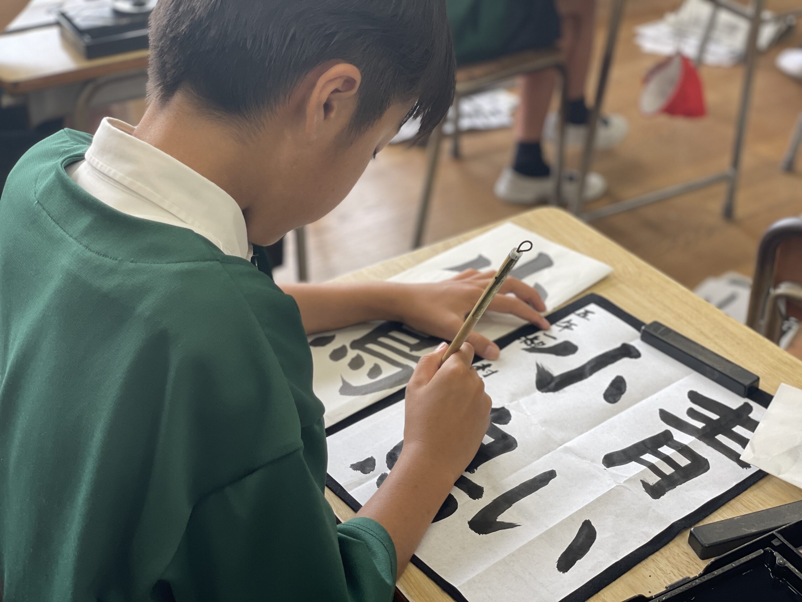 6月13日(木)に5年生が書道指導を受けました。今回は「青い小鳥」を書いていきました。書くときには、線と線の間隔を一定にすることや「はね」、「はらい」などを意識することでバランスの取れた字になると教わりました。子供たちはお手本を見ながら集中して取り組んでいました。字のバランスを取ることに苦戦しながらも丁寧な字を書いていくことができました。日常生活の中でも丁寧な字を書いていくことを心掛けていくといいですね。