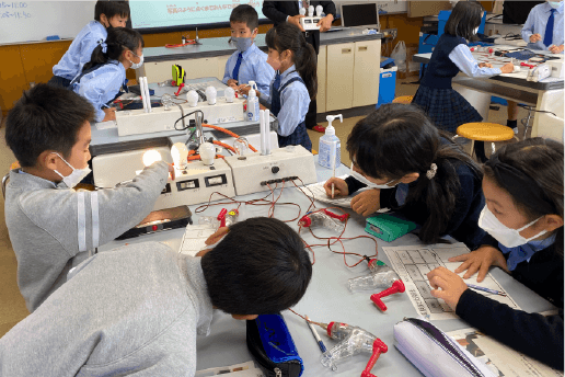 さまざまな事象に触れる経験が、子供の知的好奇心を育むという考え方のもと、本校の理科の授業では、実験を多く取り入れています。また津田学園中学校や企業とも連携して、より専門的な実験を行い「もっと知りたい!」という子供の探究心を大切にしています。