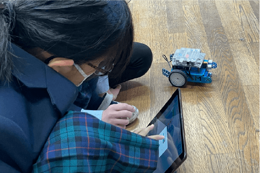 プログラミング学習などで「論理的思考力」や「課題解決力」を養います。児童は、自分たちでプログラムを考えて図形を描いたり、ロボットを動かしたり、音楽を創作したりしています。そこから物事を整理して順序立てて考えることや仲間と協力して課題を解決に導く力を養っています。