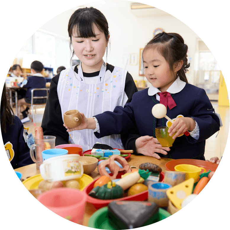 就園前の1~2歳児のお子さまを対象とする教室です。年齢や発育に応じた本学園独自のカリキュラムに基づき、経験豊富な教諭が指導します。安心して遊び学べる環境を提供し、ご家庭との連携を大切にして、子育てを支援しています。