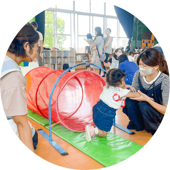 お子さまが楽しむことはもちろん、親子のスキンシップを図ることも大切にしています。また、保護者同士の交流も深まり、情報交換の場としてもご利用いただいています。各幼稚園で月に1回開催しています。津田学園の5つの幼稚園への参加も大歓迎です。